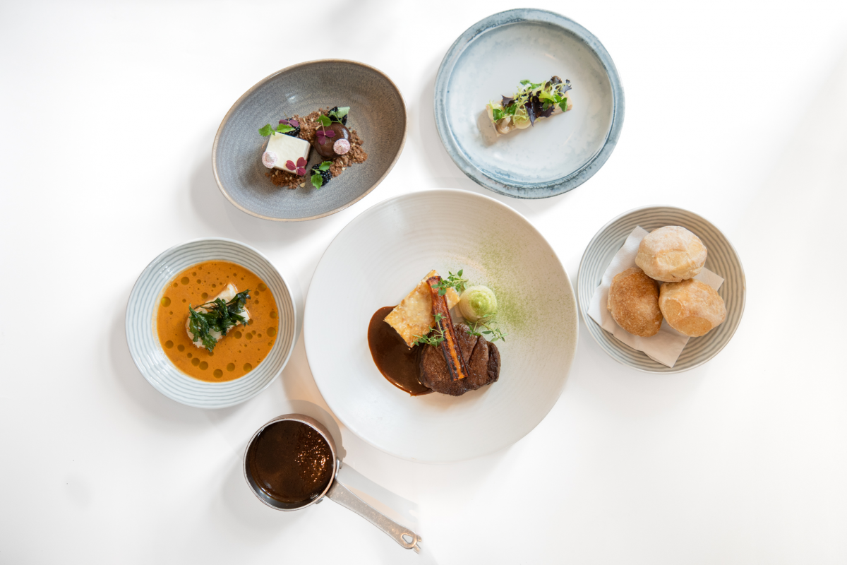 - Oksemørbrad og Pommes Anna med vesterhavsost, confiterede gulerødder, selleripuré med brunet smør og kraftig rødvinssauce